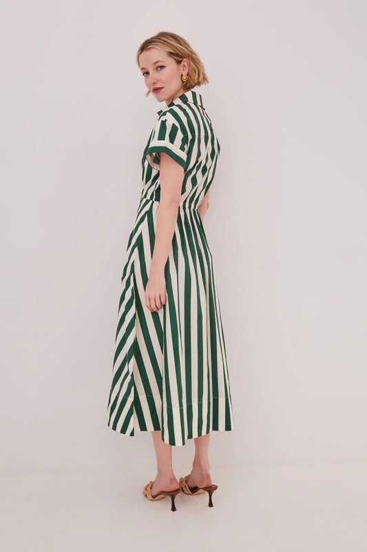 Asbury Dress Green White Stripe