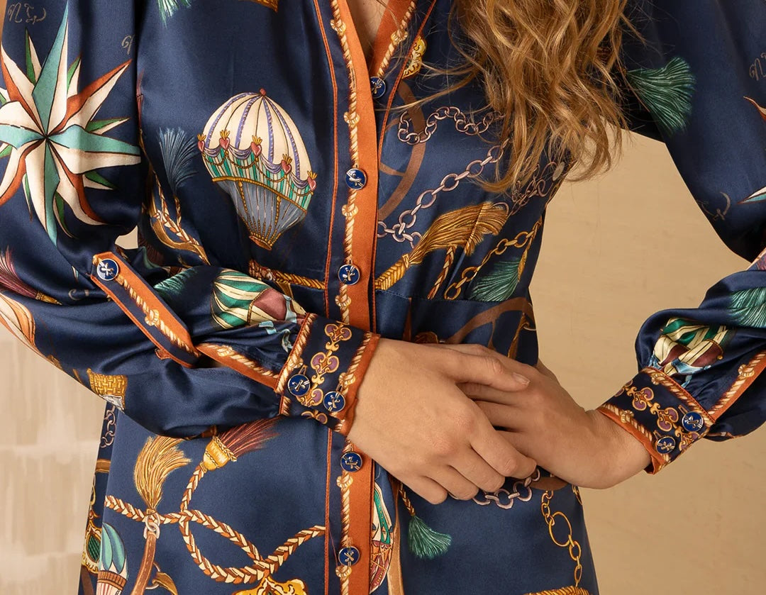 Pilar Silk Wide-eg Pant Black/Blue arge Porcelain