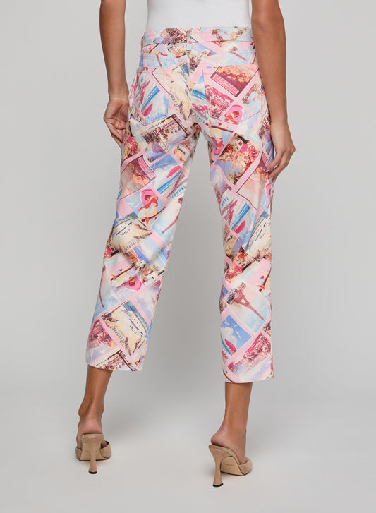 Blaine Cropped Stovepipe Jean ight Pink Multi Postcard Print