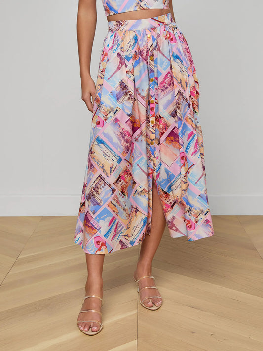 Seina Poplin Midi Skirt ight Pink Multi Small Postcard Print