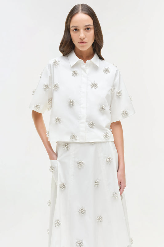 Cindy Crystal Star Cutout Cropped Tee Off White