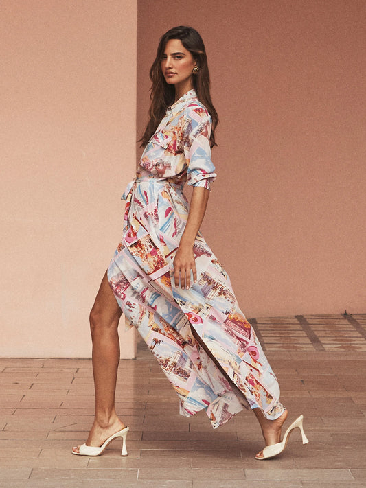 Cameron Silk Shirt Dress ight Pink Multi arge Postcard Print