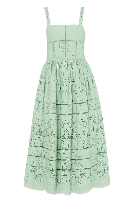 Anya Embroidered Soft Sweetheart Midi Dress Soft Sage