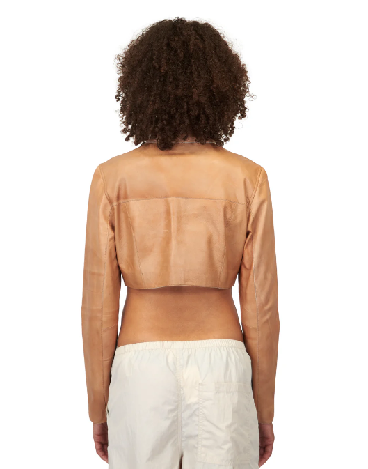 Cropped Vespa Patina Leather Jacket Au Lait