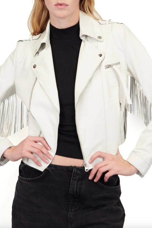 Molly Burnished Leather Jacket White