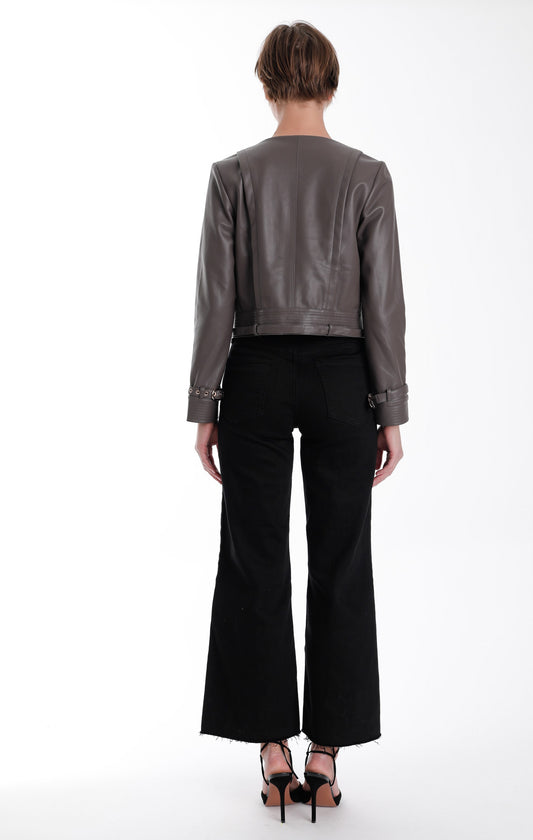 Natalie Vegan Leather Jacket Smoke Grey