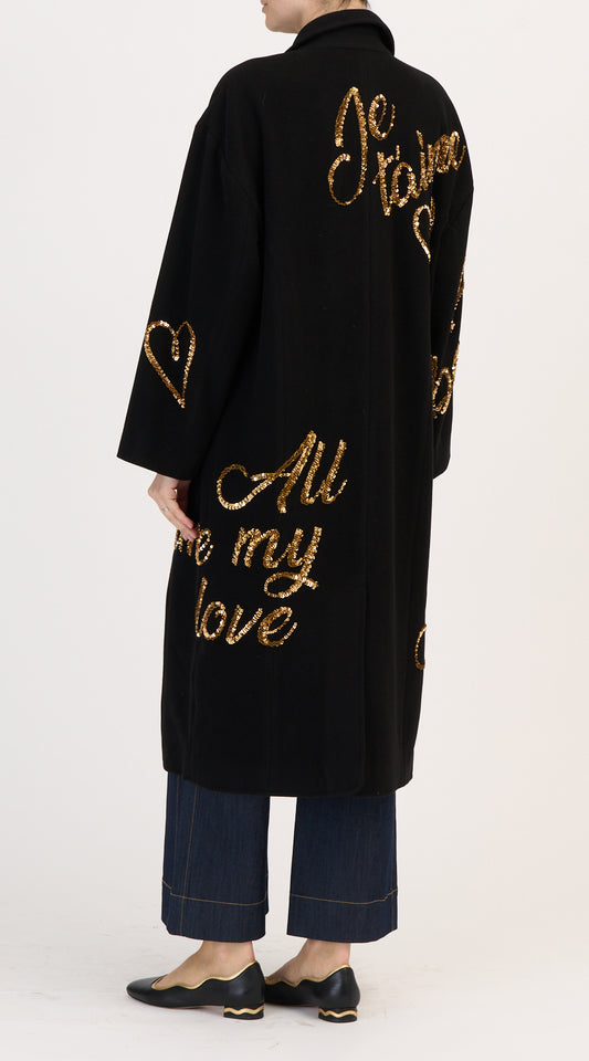 Crushed Sequin Loveletter Gravis Coat Black/Gold