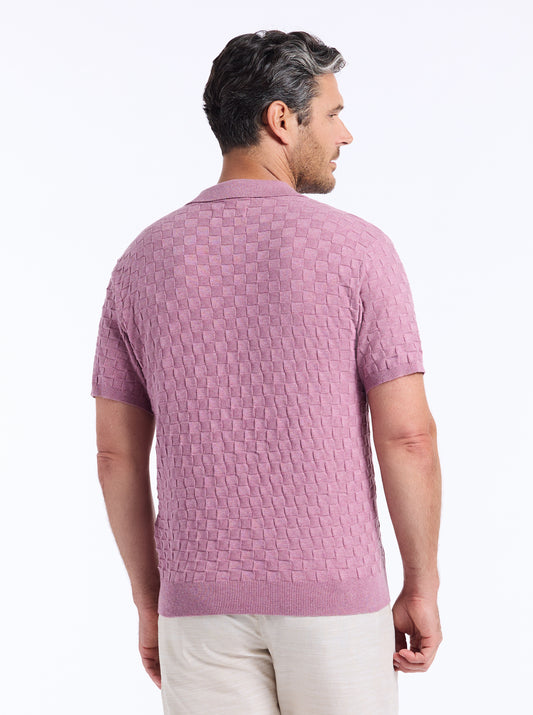Jaylon Waffle Knit Zip Neck Short Sleeve Polo Navy