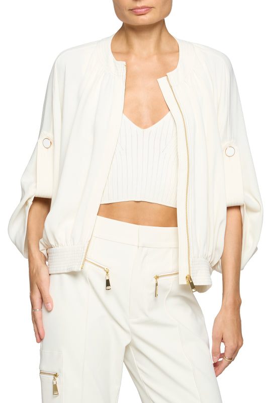 Colette Ribbed Combo Short Sleeve Top Ivory