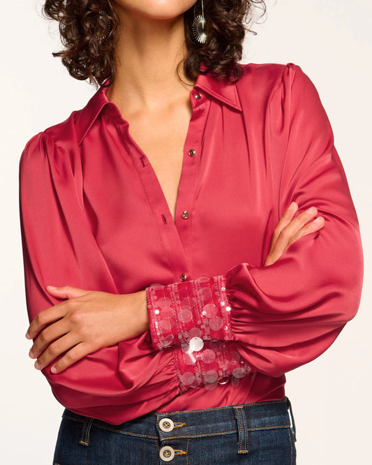 Talisa Long Sleeve Button Down Top Floral Mesh