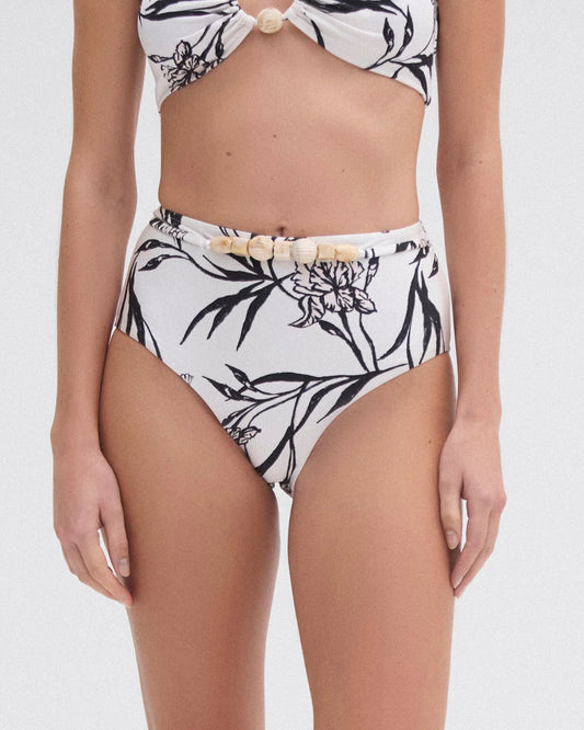 Printed Ivo High Rise Bikini Bottom Red Leaf