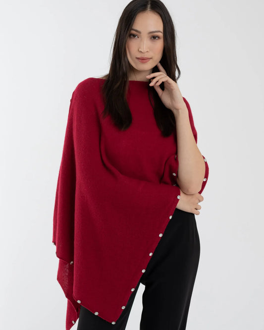 Cashmere Pearl Trim Poncho WhiteJackie Z Style Co