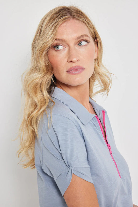 Karabeth Bow Embellished Fleece Pullover Aspen Blue