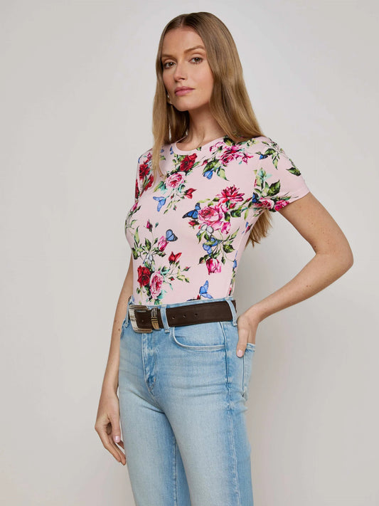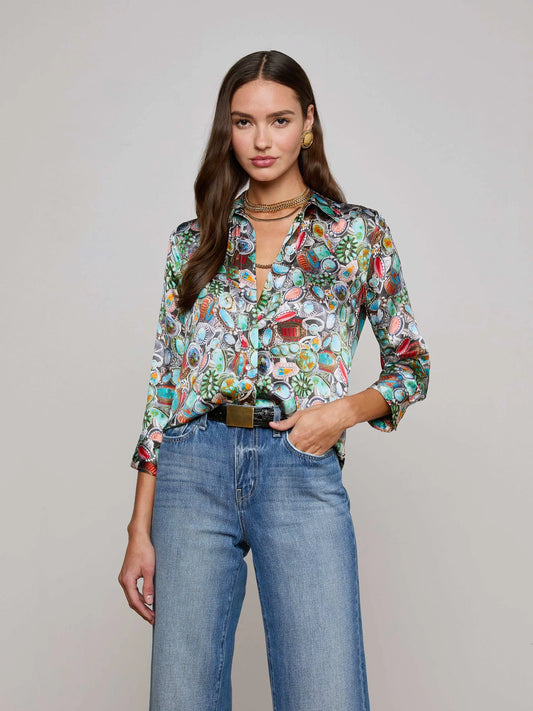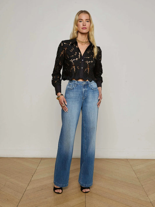 Talisa Long Sleeve Button Down Top Floral Mesh