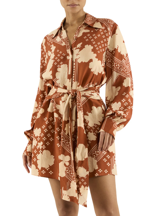 Lillia Cotton Belted Mini Short Sandstone Stripe