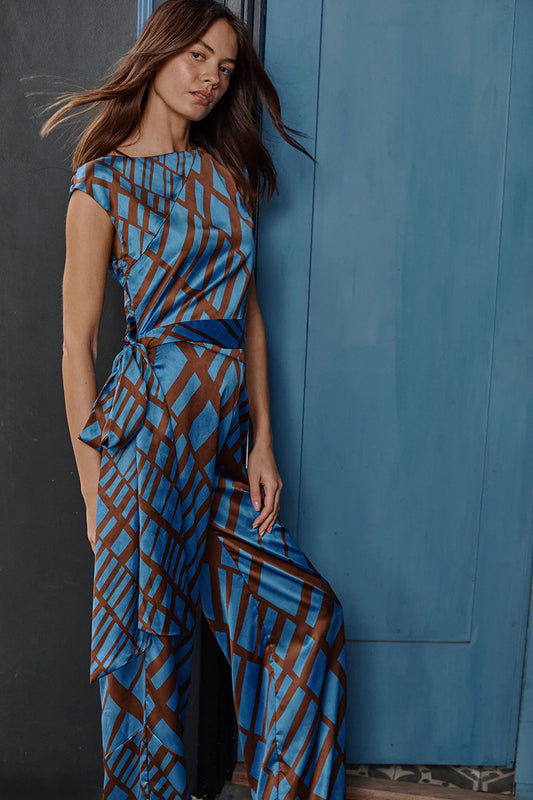 Kamil Plunging Sleeveless Maxi Dress Ultramarine Stripe