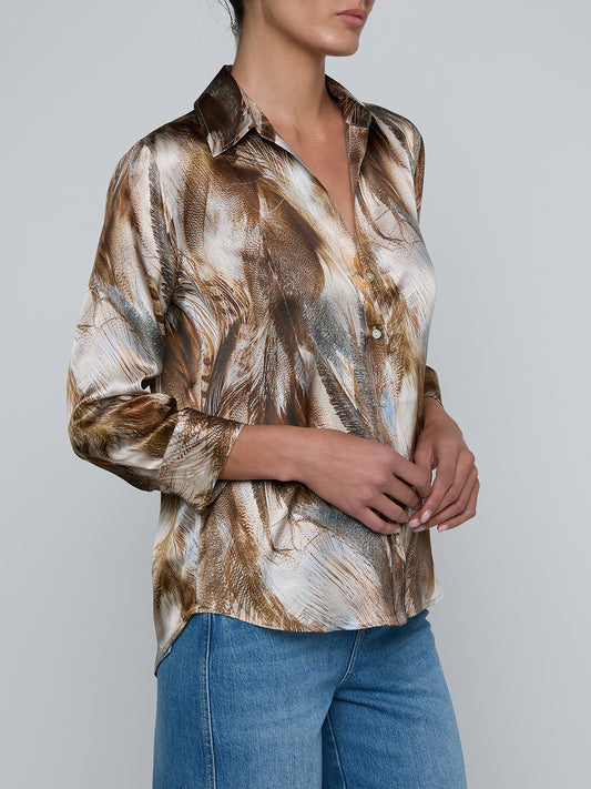 Dani Silk Blouse Neutral/Black Mix Feather