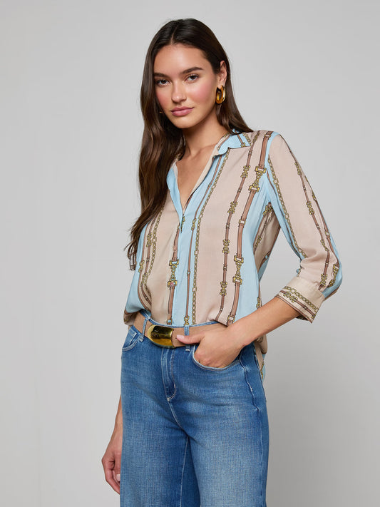 Camille Blouse Taupe/ight Sage Belt Stripe