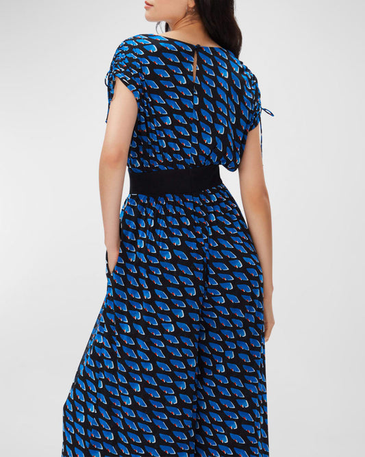 Christiana Smocked Embellished Strapless Jumpsuit Navy
