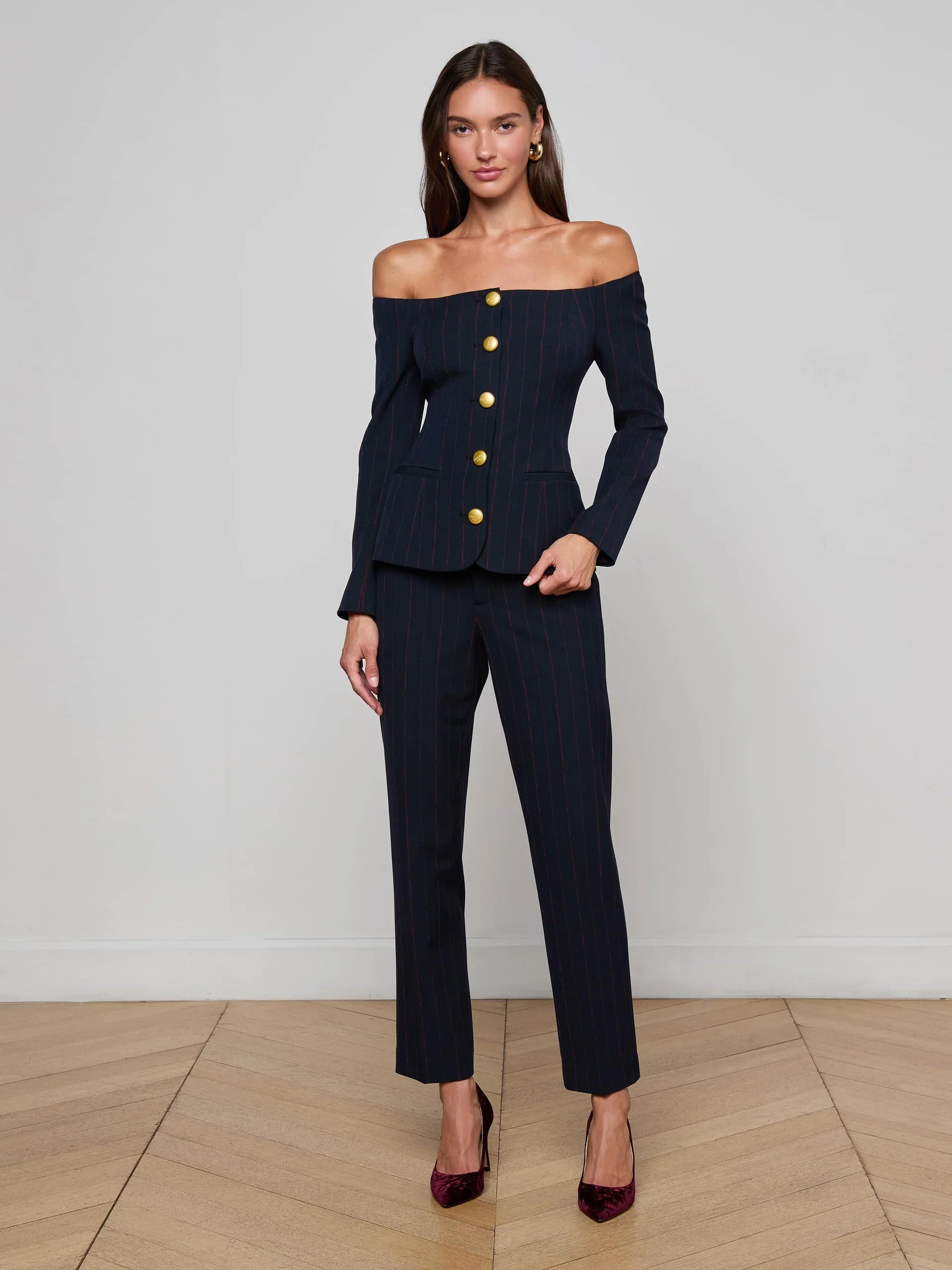 Alice Blazer Top Midnight/Burgundy Pinstripe - L'AGENCE