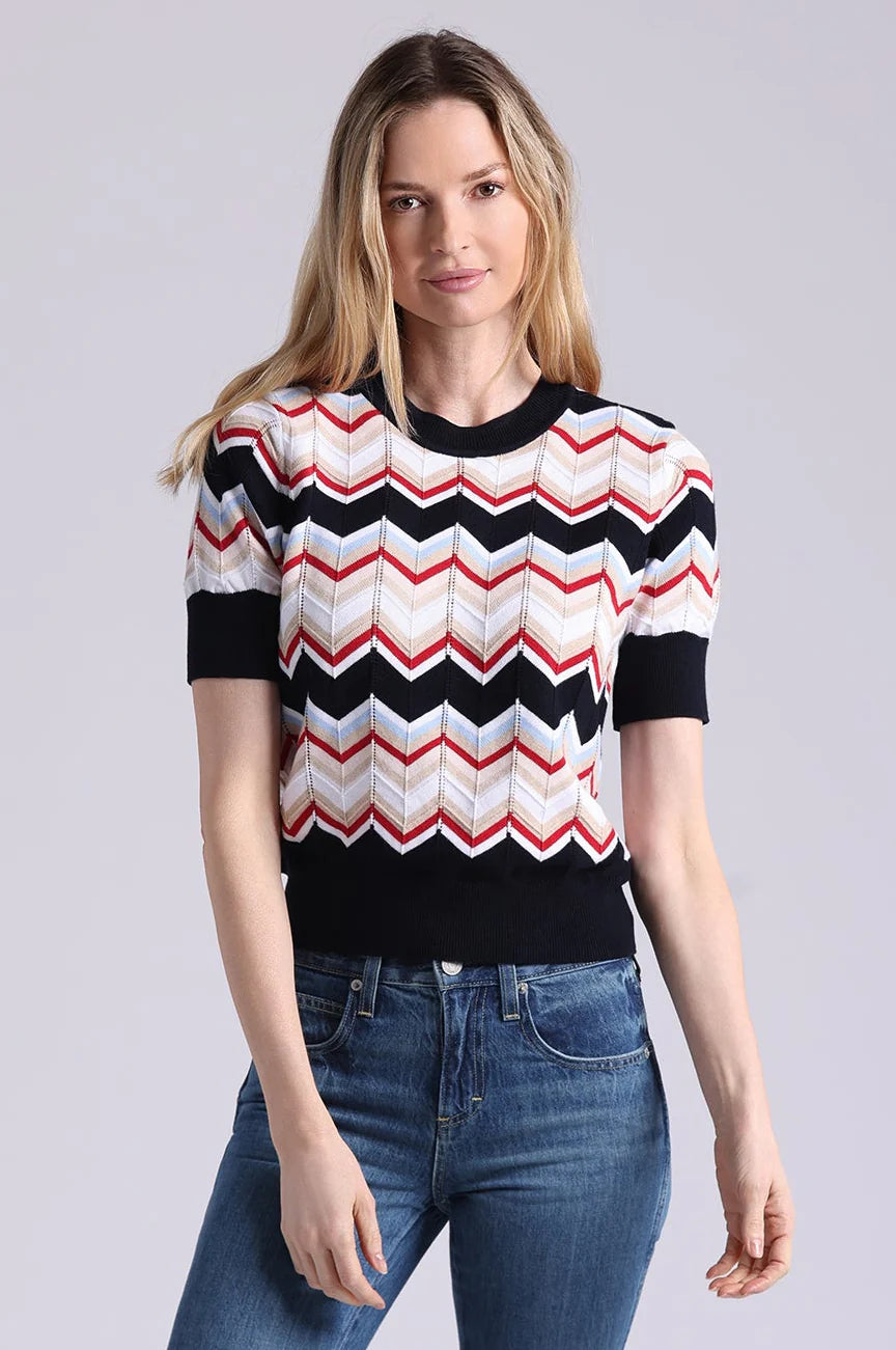 Cotton Cashmere Chevron Short Sleeve Crew Navy Combo
