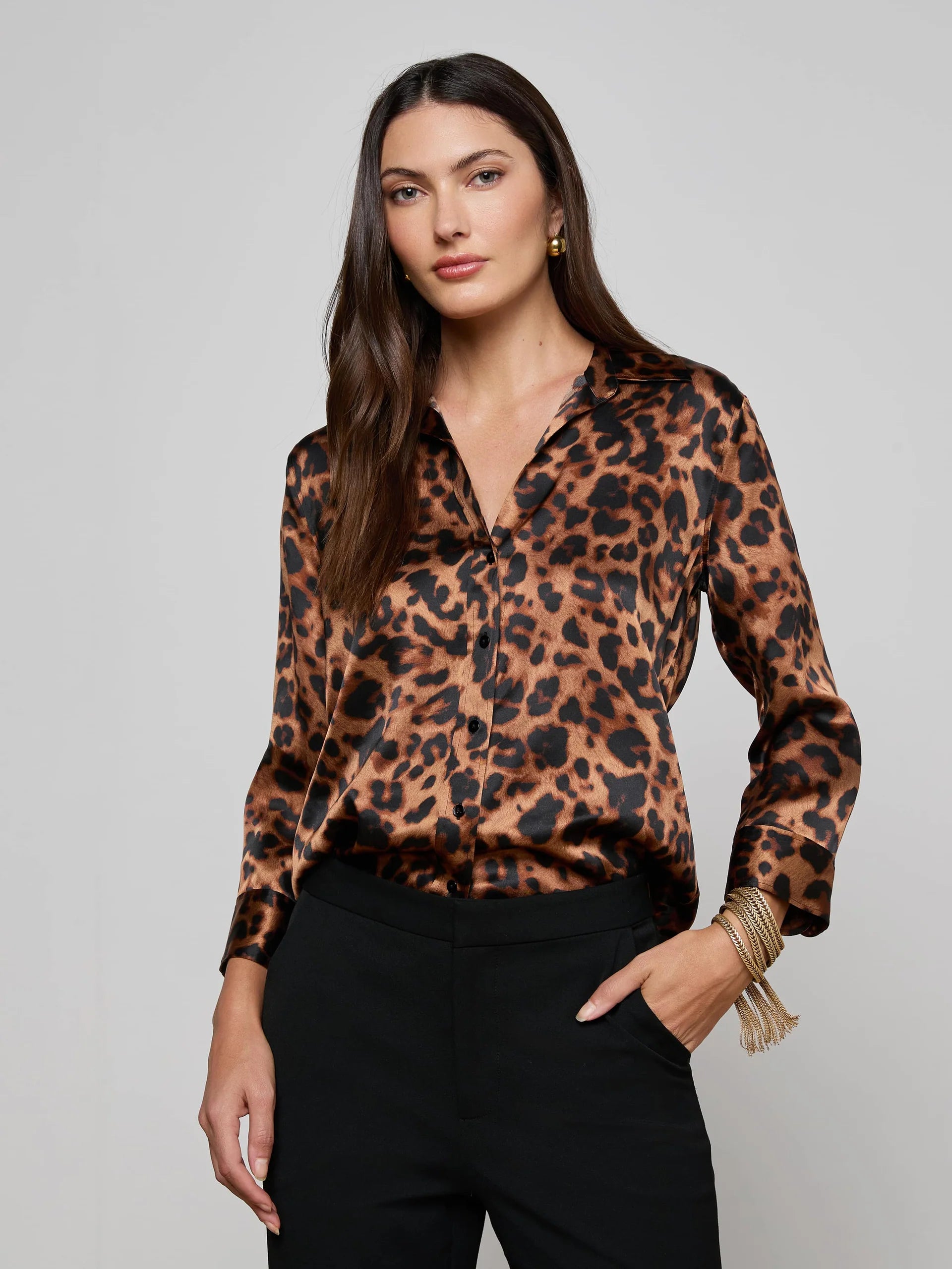 Dani Silk Blouse Brown Multi Amur Leopard - L'AGENCE