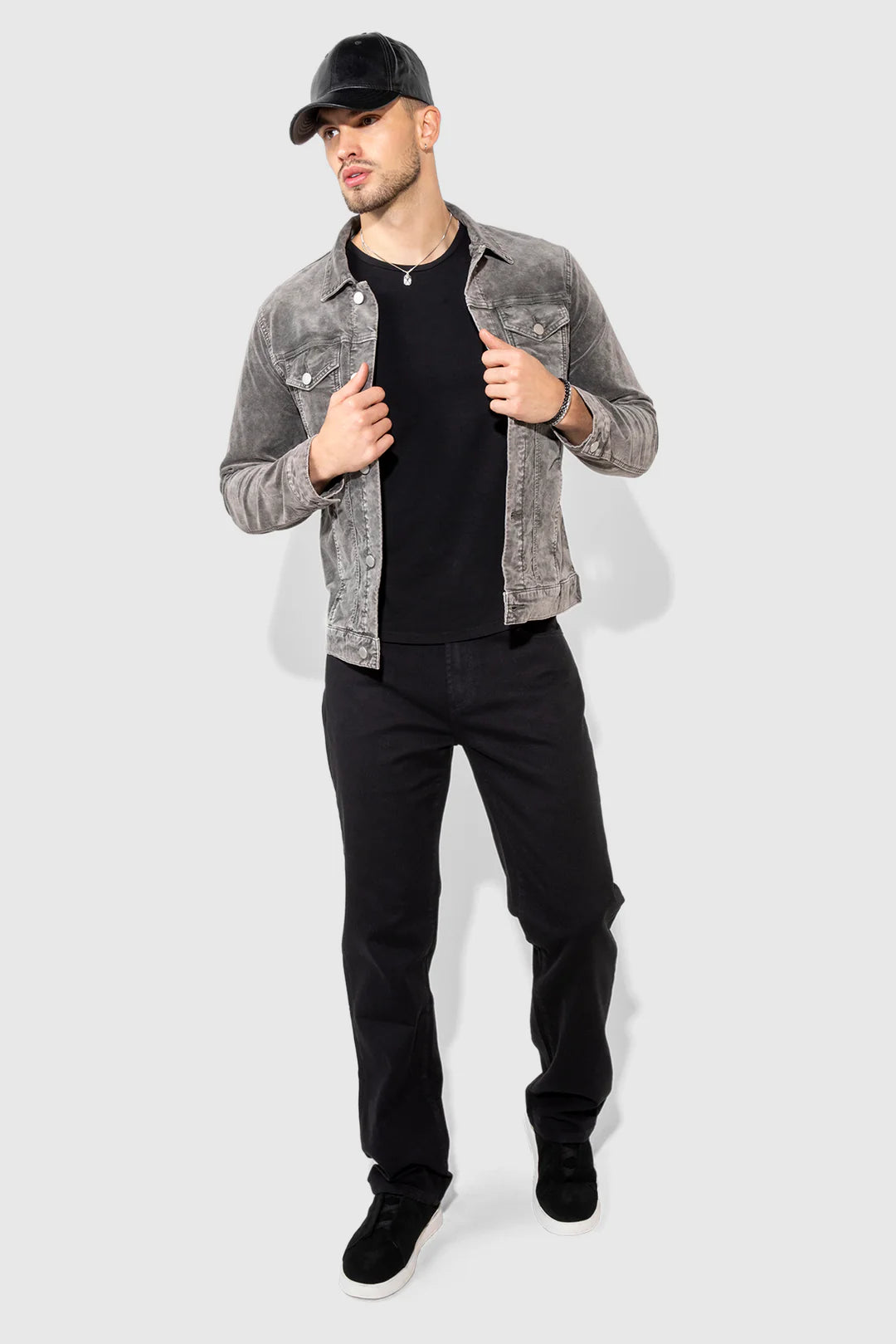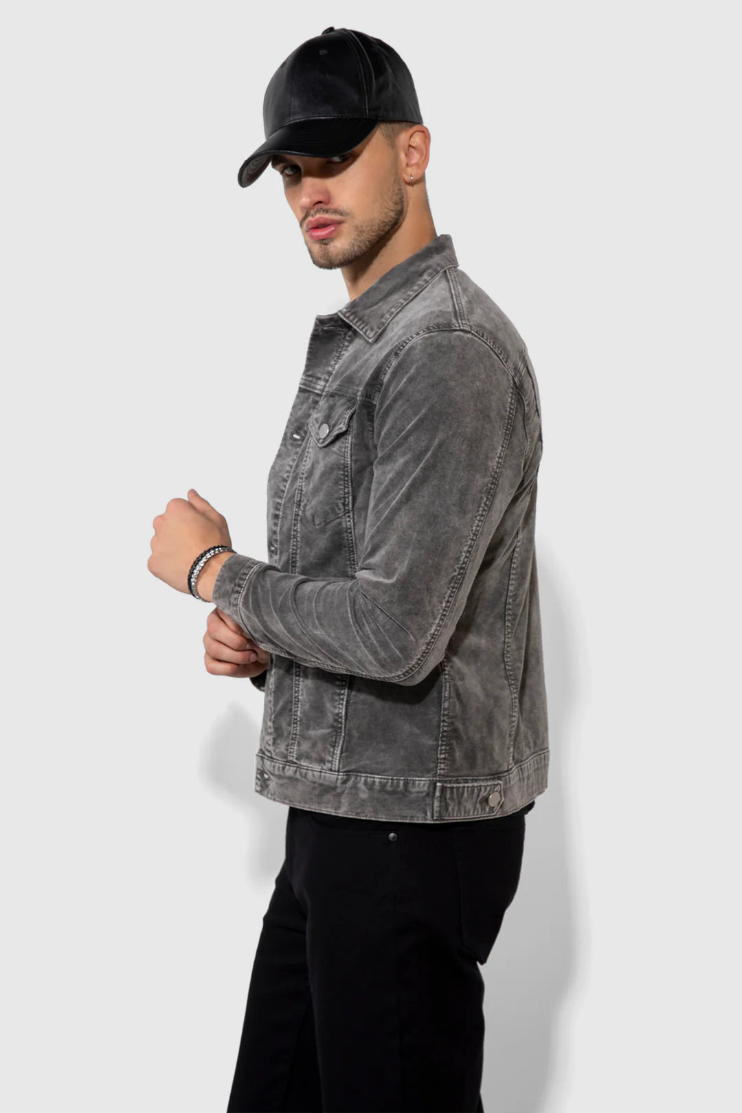 Meet The Dean—your new wardrobe MVP that refuses to pick a side. This slim-fit trucker jacket hugs your frame in all the right ways, delivering that sharp, put-together vibe whether you're grabbing coffee or hitting the town. Velvet detailing adds a touch of vintage cool, while the timeless silhouette means it'll look just as good next season.