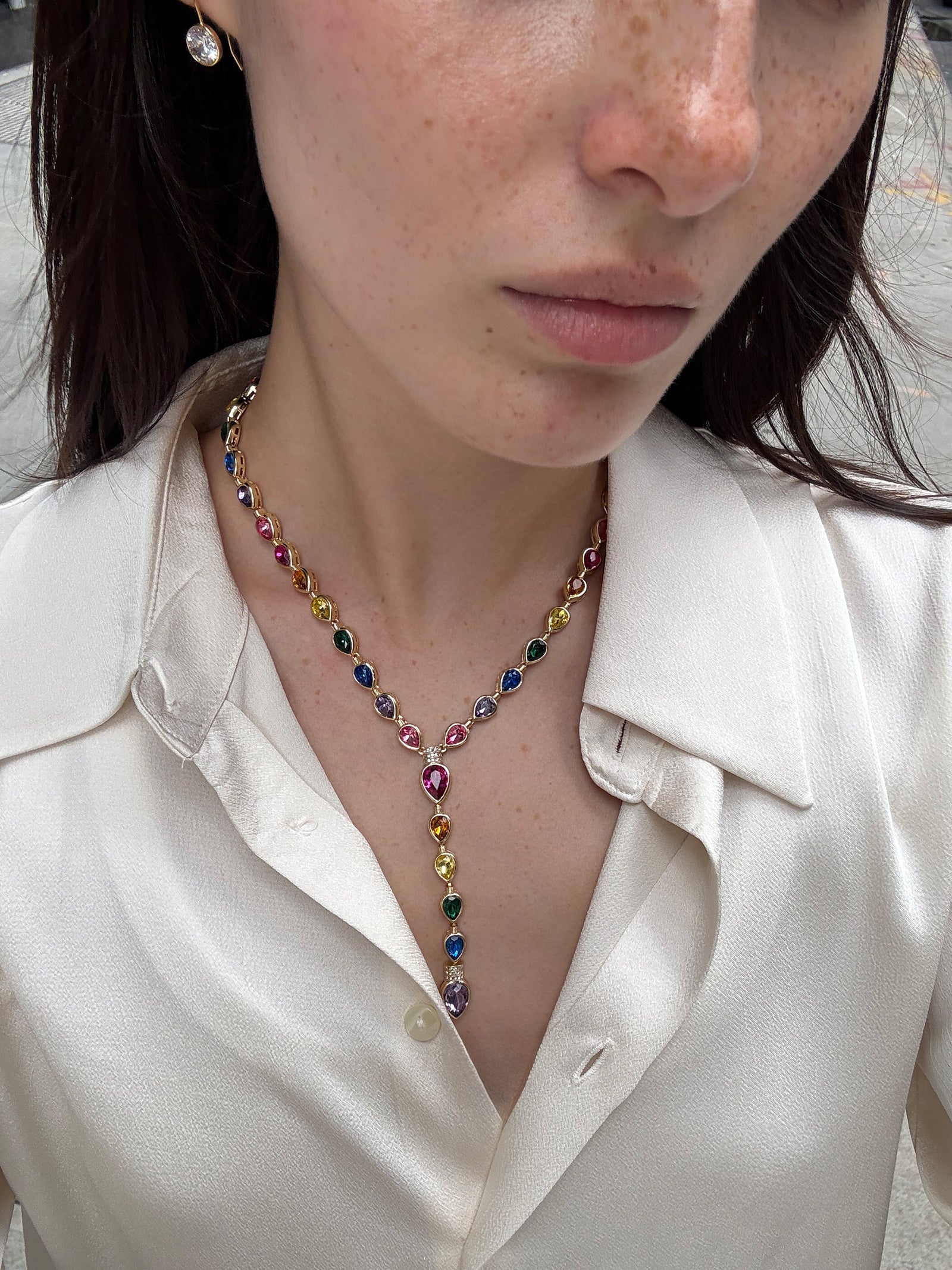 Add a festive sparkle to your look with the Glow With It Lariat Necklace. Featuring multi-colored crystals that mimic holiday lights, this playful Y-shaped necklace is perfect for layering or wearing solo. With an adjustable lobster clasp offering four length options, it’s easy to customize your style. Perfect for holiday parties or adding a cheerful pop of color any time of year!