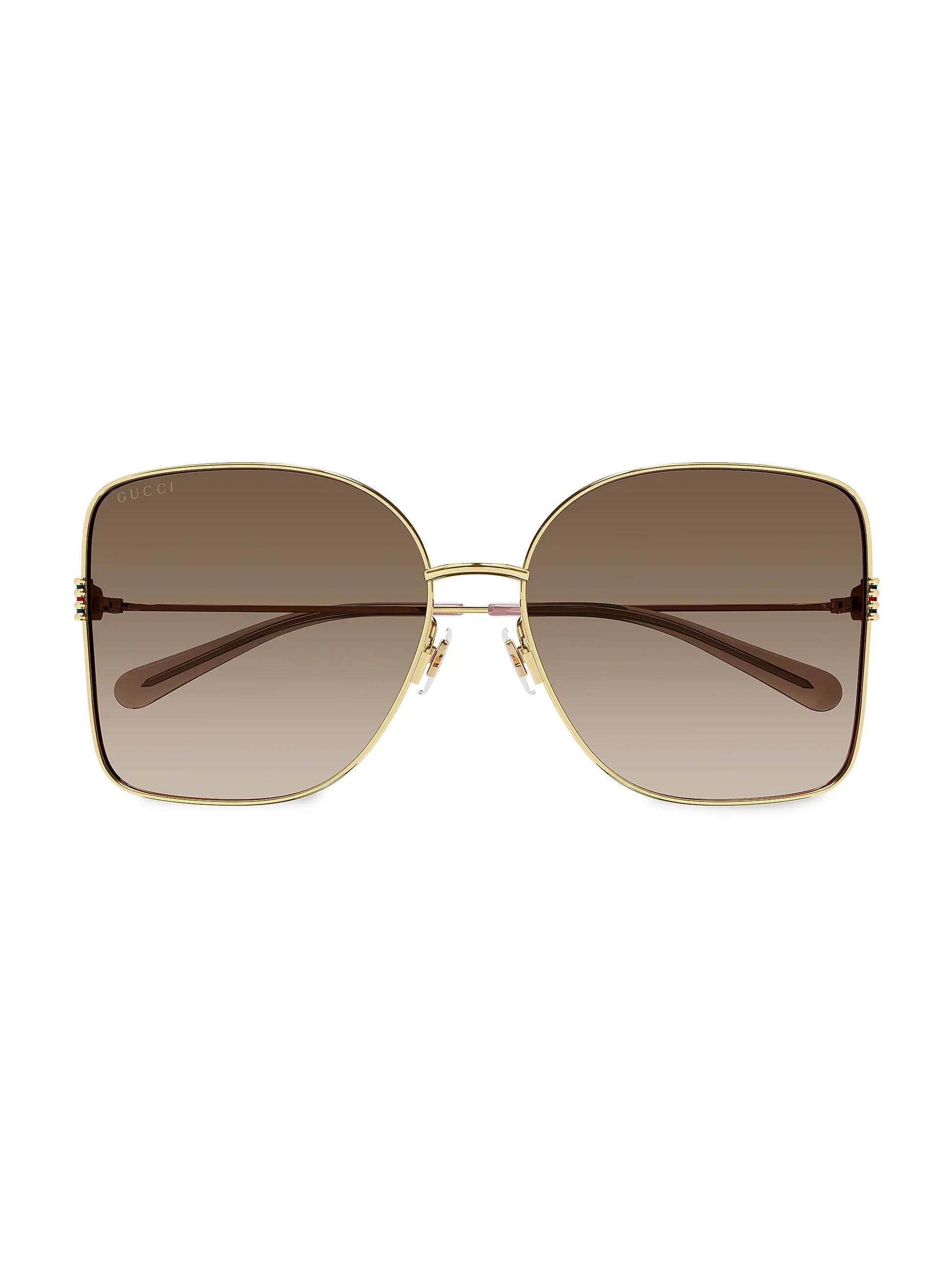 Look dazzling in these Gucci Women's Metal Sunglasses! Crafted with a luxurious gold frame, rectangle shape, and brown gradient lenses, these shades are perfect for a stylish summer look. Be ready to turn heads and show off your fashion sense wherever you go!