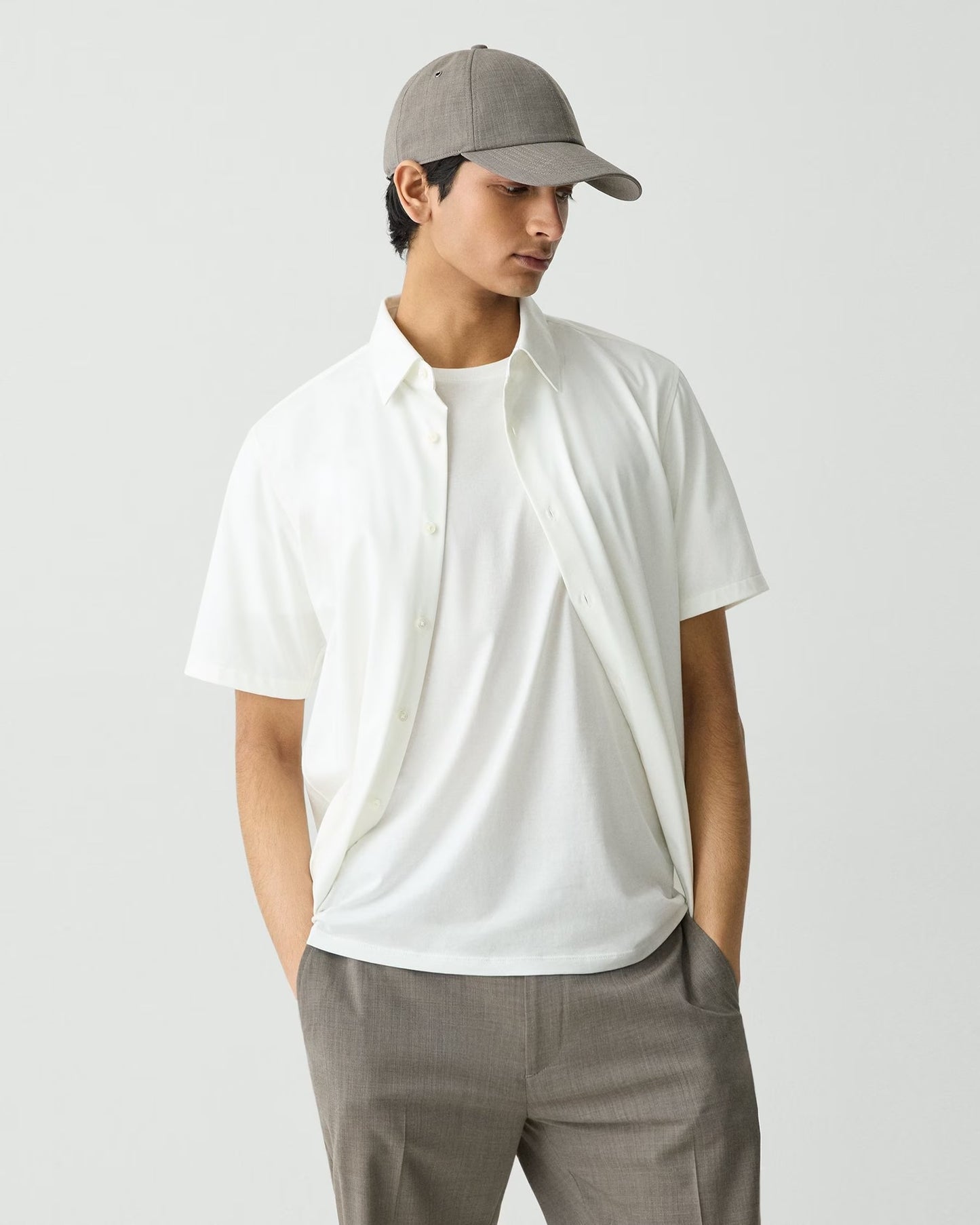 Irving Short Sleeve Shirt Structure Knit White - Theory Men