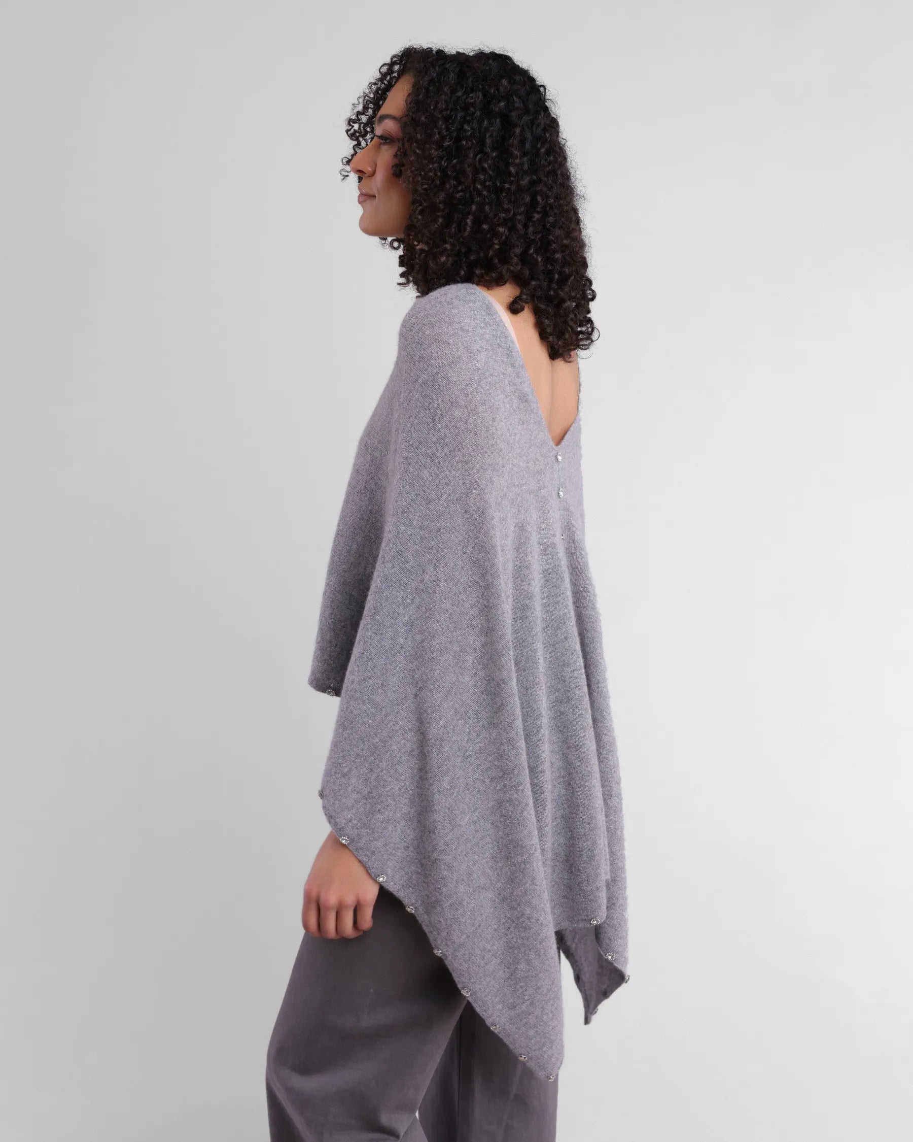 Cashmere Rhinestone Poncho Flagstone - Jackie Z Style Co.