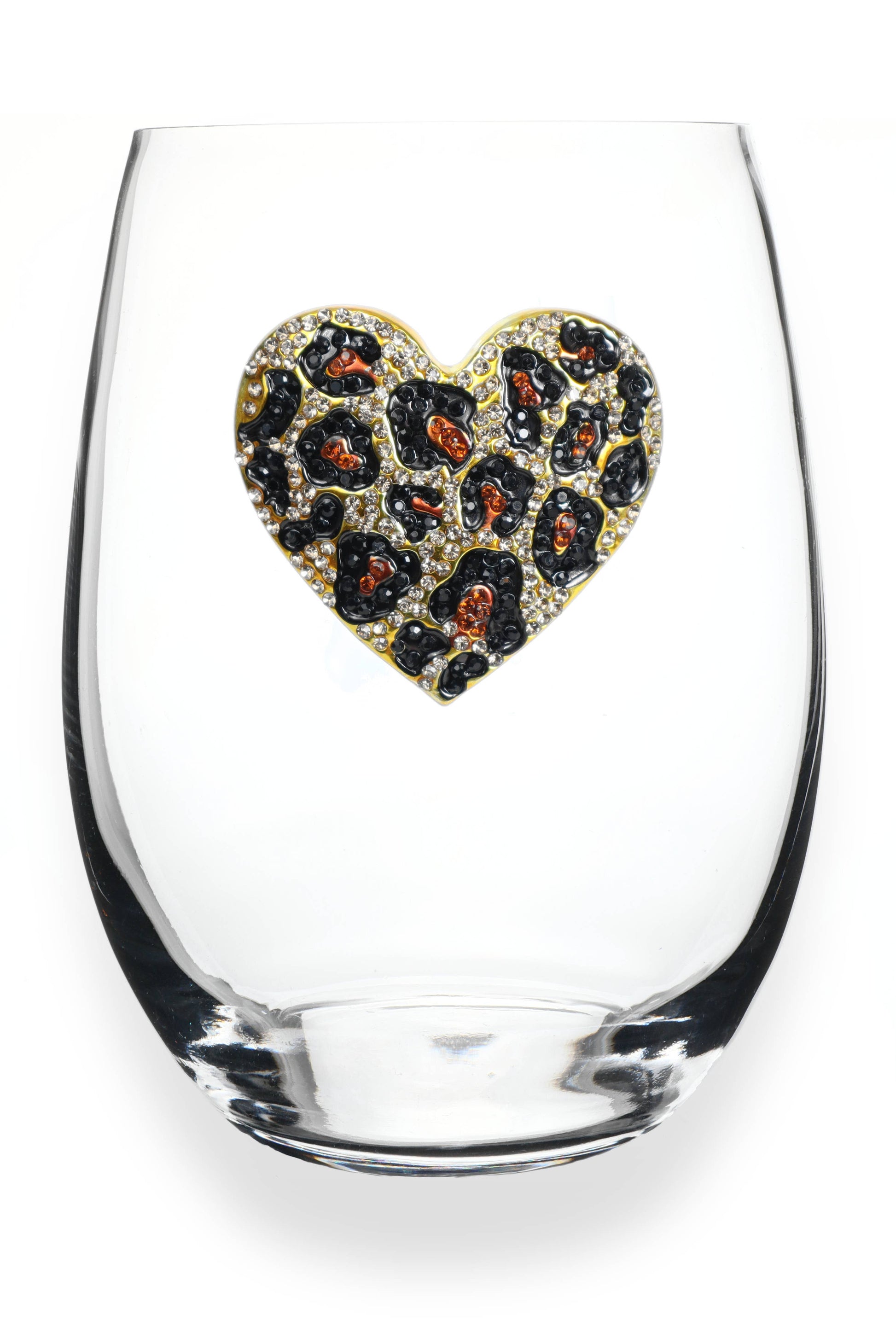 Leopard Heart Jeweled Stemless Wine Glass - The Queens Jewels