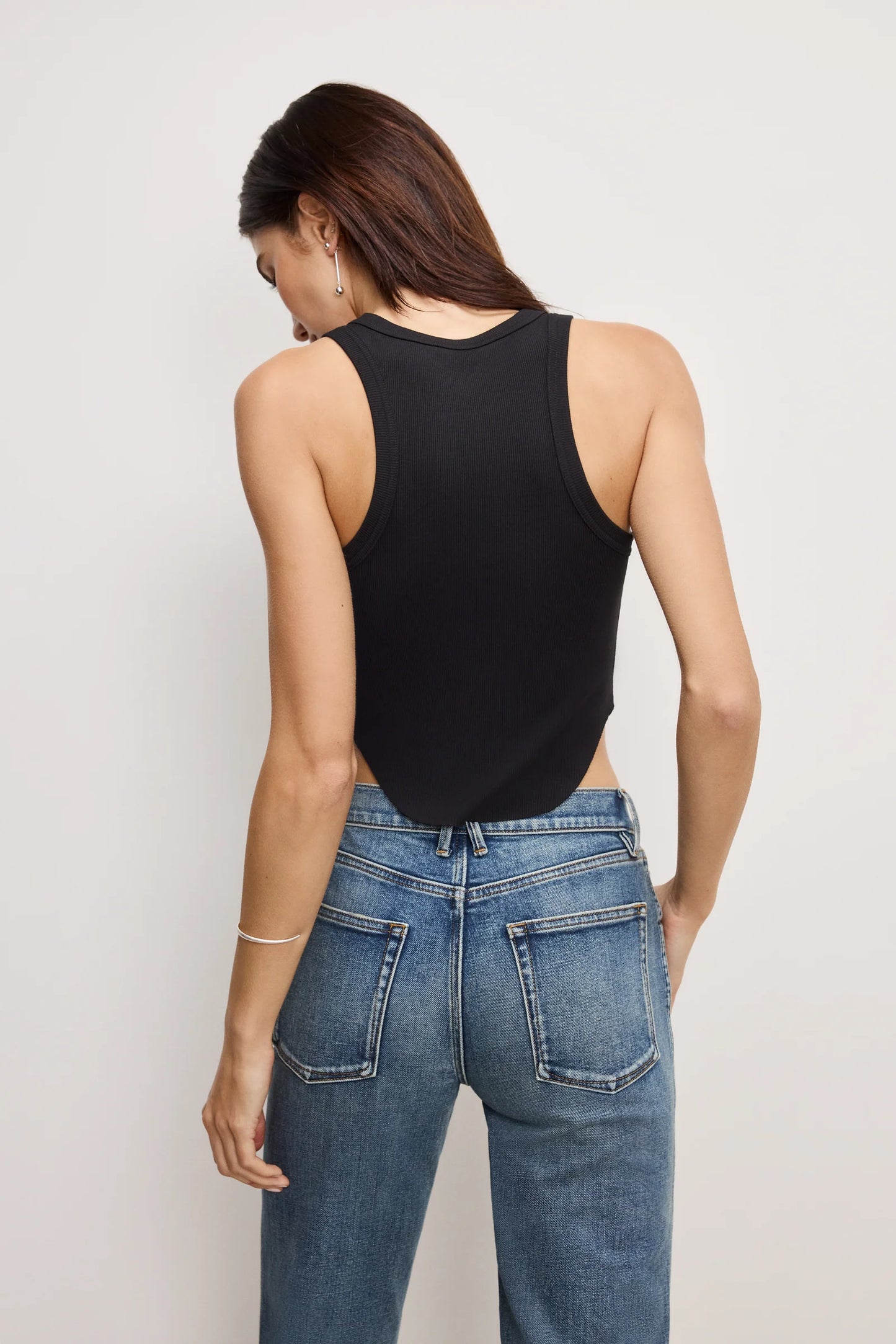Introducing the perfect tank for any occasion - the Lightweight Rib Racer Tank from Good American. Made with compressive ribbed cotton, this tank offers both comfort and style. With its classic scoop neckline and versatile design, it's a must-have for any wardrobe. Whether you're running errands, hitting the gym, or just relaxing at home, this tank has got you covered.