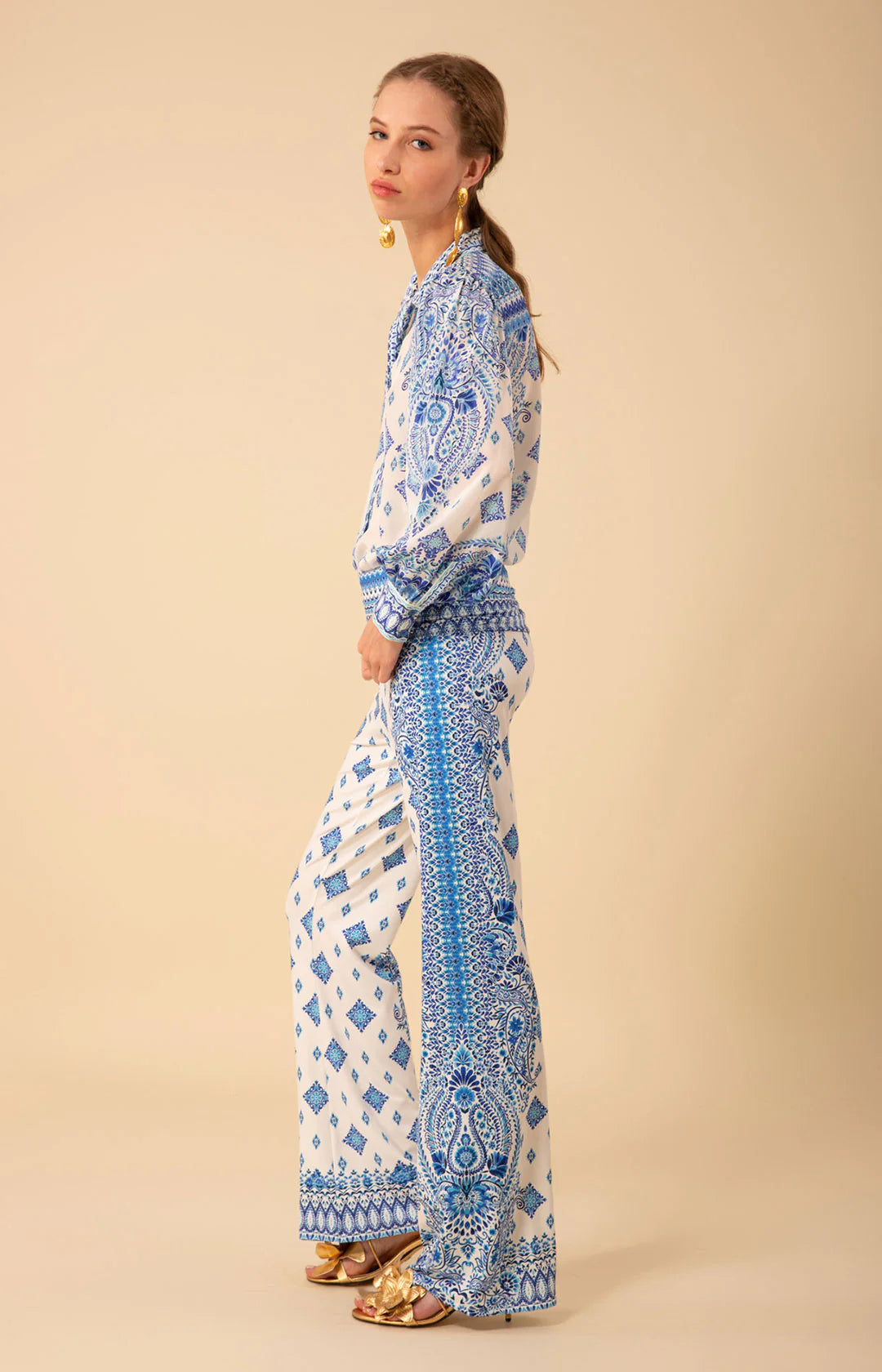 Unleash your inner fashionista with the Mackenzie Jersey Pant by Hale Bob. Made from luxurious matte jersey fabric, these pants feature a comfortable foldover waistband and a slim fit leg with a slight flare for a flattering silhouette. Perfect for any occasion, these pants will take your style to the next level.