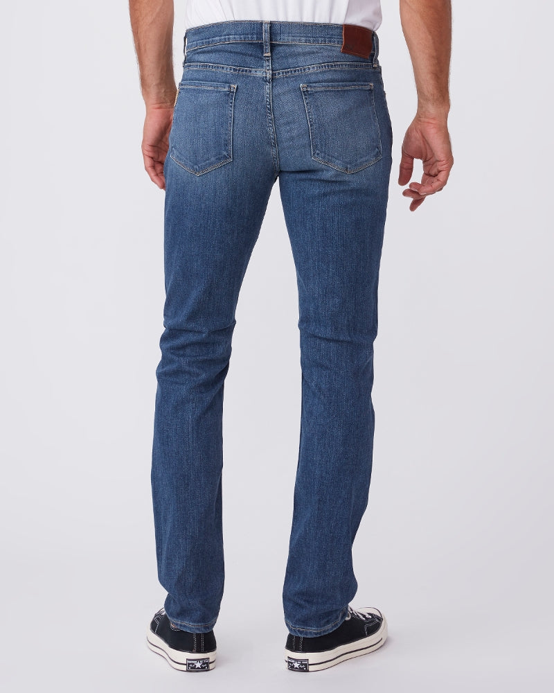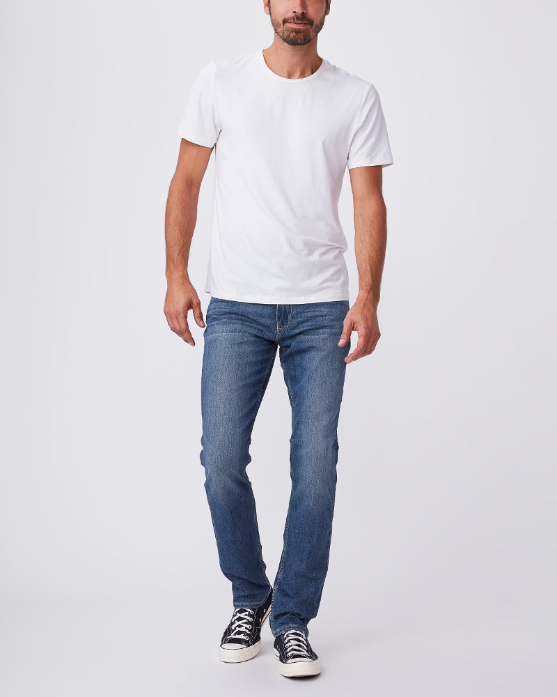 An everyday jean in the perfect medium wash. Federal is our modern slim straight fit, with slight ease at the hip, loosely fitted through the thigh and straight from the knee down. This versatile medium wash has a casual, lived-in look with subtle whiskering and fading. This pair is cut from TRANSCEND denim which guarantees the most comfortable fit with premium stretch and recovery for everyday wear.