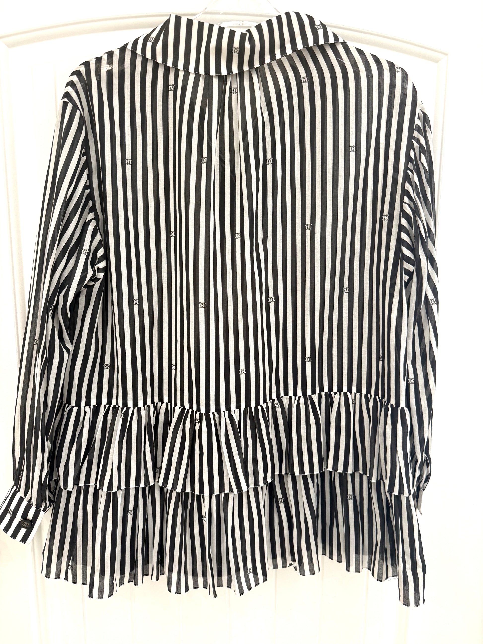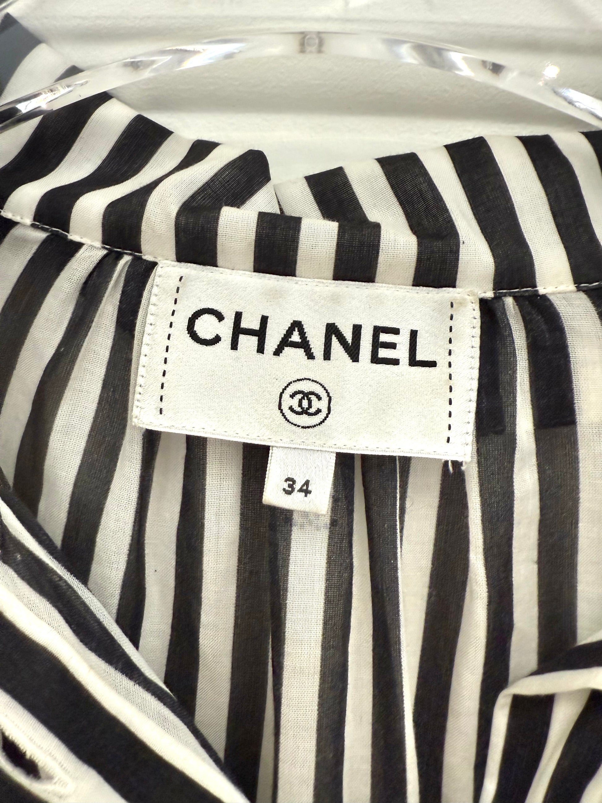 Rhinestone Double CC Striped Shirt Dress - Chanel