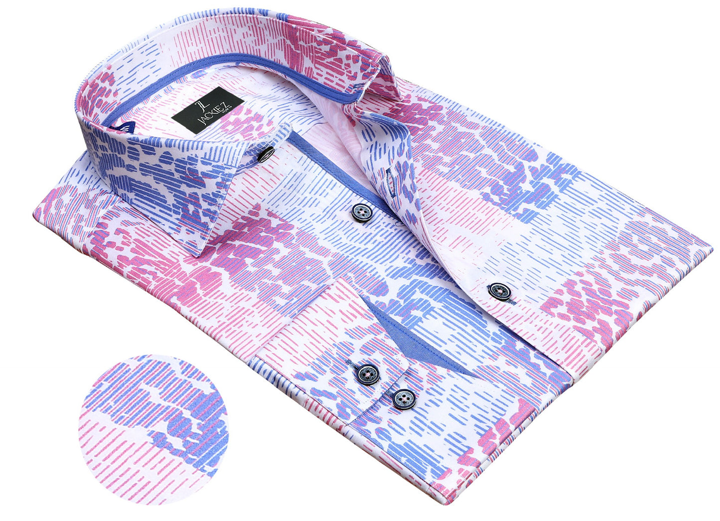 Our exclusive Jackie Z Men's Shirts are a customer favorite. These elegant dress shirts are tailored from crisp, Turkish cotton poplin with a spread collar and a fit that works tucked in or untucked; Considered a slim fit. This versatile shirt is designed for both business wear and casual wear.