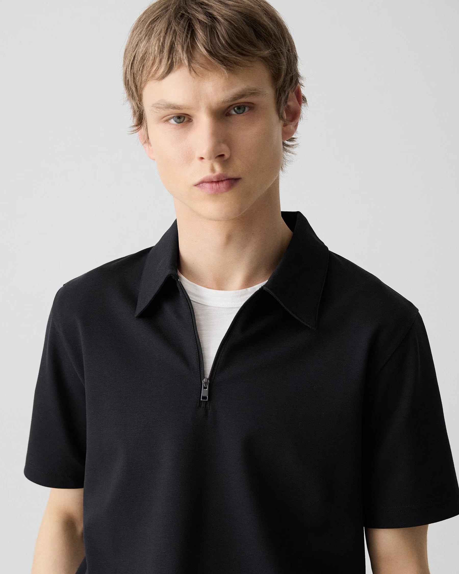 The Ryder Quarter-Zip Polo combines refined style with everyday comfort. This short-sleeve essential features a distinctive rib knit pointed collar and quarter-zip closure for versatile layering. Crafted from a viscose-blend jersey sourced from responsibly managed forests, it delivers breathability and natural movement. Machine-washable and designed to keep up with your active lifestyle, this elevated polo transitions seamlessly from office to weekend.