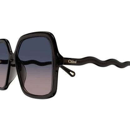 Get the ultimate retro-chic look with Women's Bio Acetate Sunglasses Grey Blue from CHLOE. The vintage oversized squared shape and double gradient lenses provide a cool edge. The waved temple draws inspiration from Chloé's iconic wave code while the teardrop cutout adds a touch of uniqueness. Shine on in style!