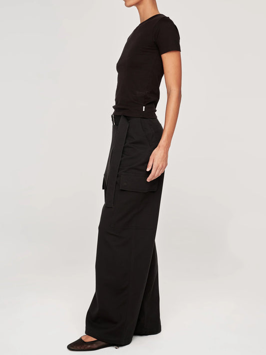 Ressi Fitted Tee Black/Red Rose Embroidery