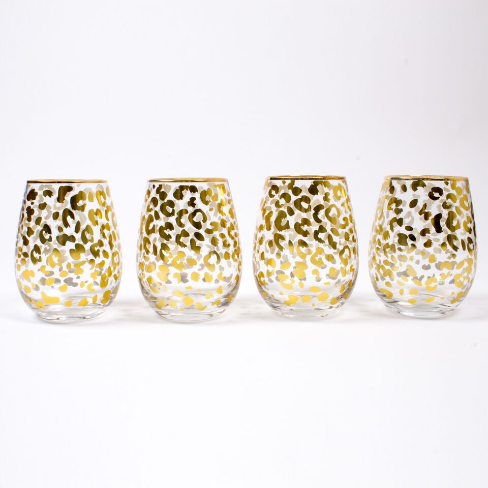 Gold Leopard Stemless Wine Glass - 8 Oak Lane