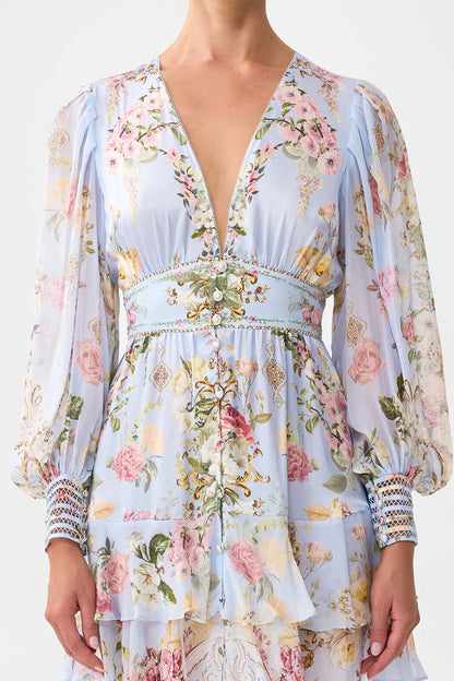 Step into charm with our Button Front Frill Dress Tiled In Time - Camilla. This playful short fit-and-flare dress boasts a flattering V neckline and a shaped waistband with an elasticated back for a comfy, perfect fit. Delight in the button front details and soft frill accents that add a flirty, feminine bounce to every move. Perfect for turning heads with effortless style!