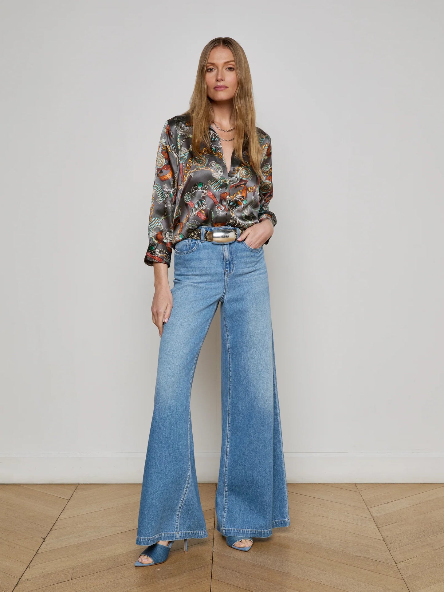 Dani Silk Blouse Multi Western Belt Print - L'AGENCE