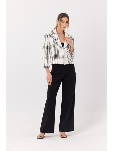 Treat yourself to a winter wardrobe update with the Geneva Jacket. This cozy plaid design combines three quarter sleeves and a single button closure for a chic fit perfect for colder days. Crafted from soft fabric, the slight crop adds a modern style to any outfit. Stay warm and stylish with the Geneva!