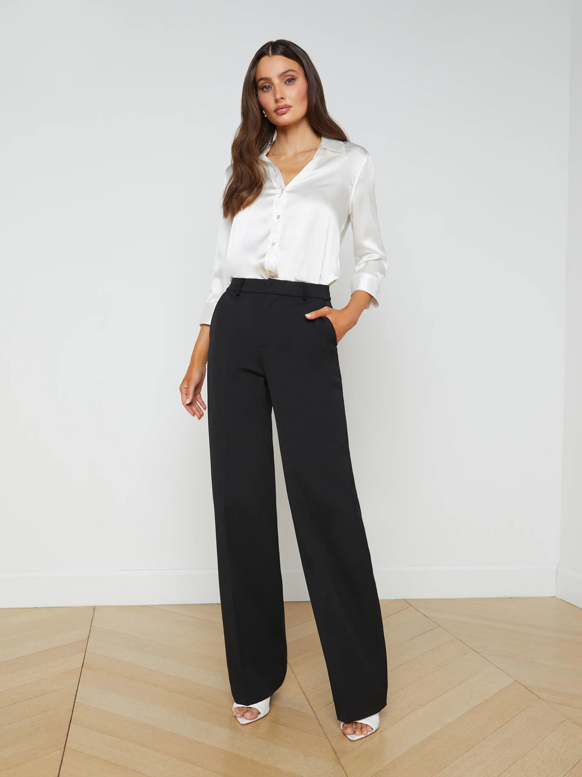 Step into style with the Livvy Trouser in classic black! These straight-leg pants offer just the right amount of stretch to hug your waist and thighs comfortably before flowing into a sleek, balanced silhouette. With subtle slit pockets and hidden closures, they keep things effortlessly chic. Perfect for mixing with a silky blouse and heels, they take you from desk meetings to dinner plans without missing a beat. Your new go-to pant just got a little more irresistible!