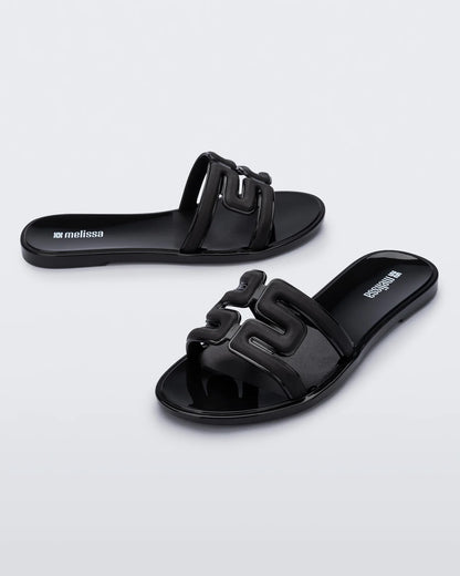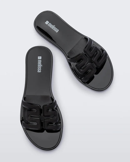 Step into effortless style with the M Slide Black by Melissa. Featuring a chic geometric upper with playful cutouts, these sandals offer breathable comfort without sacrificing flair. Perfect for when you want to keep it casual yet eye-catching, the M Slide adds a touch of luxury to your everyday look. Simple, stylish, and ready to make a statement wherever you go!