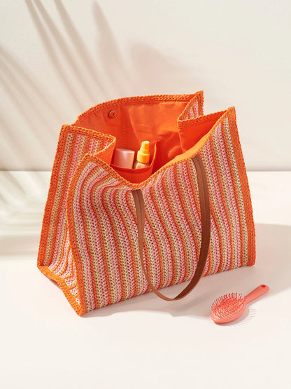 Brighten your day with the Maya Tote Pink by Shiraleah! This lively woven bag features cheerful stripes in a playful palette, perfect for adding a splash of color to any look. Lightweight yet spacious, it easily holds everything from beach gear to everyday essentials. Sturdy faux leather handles and a durable weave ensure it’s ready for any adventure, making it your fun and reliable companion for errands or escapes.