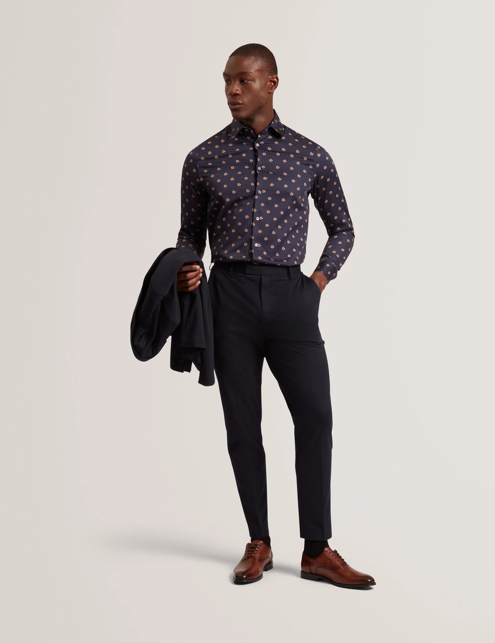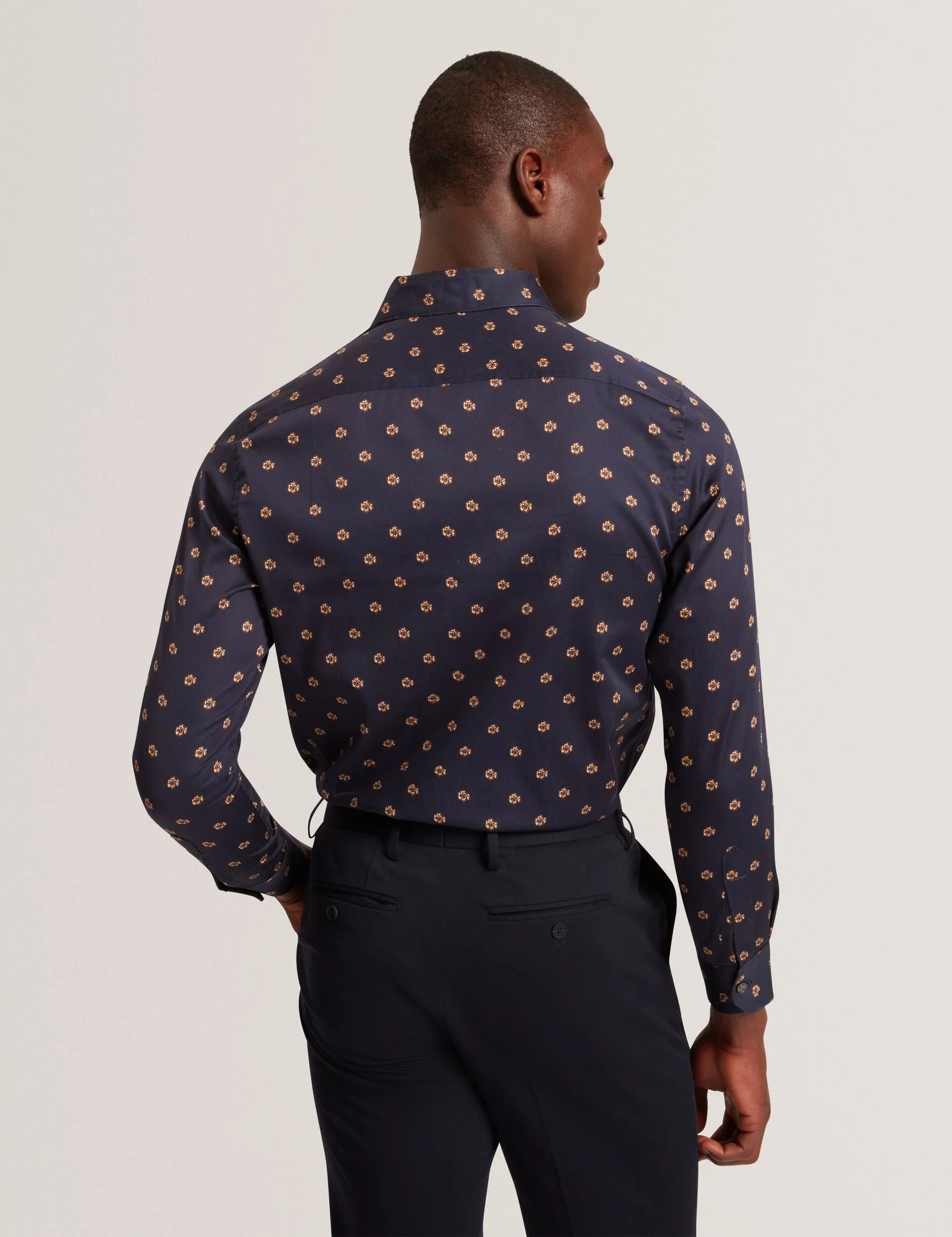 Olufar Ditsy Floral Print Cotton Shirt Navy - Ted Baker