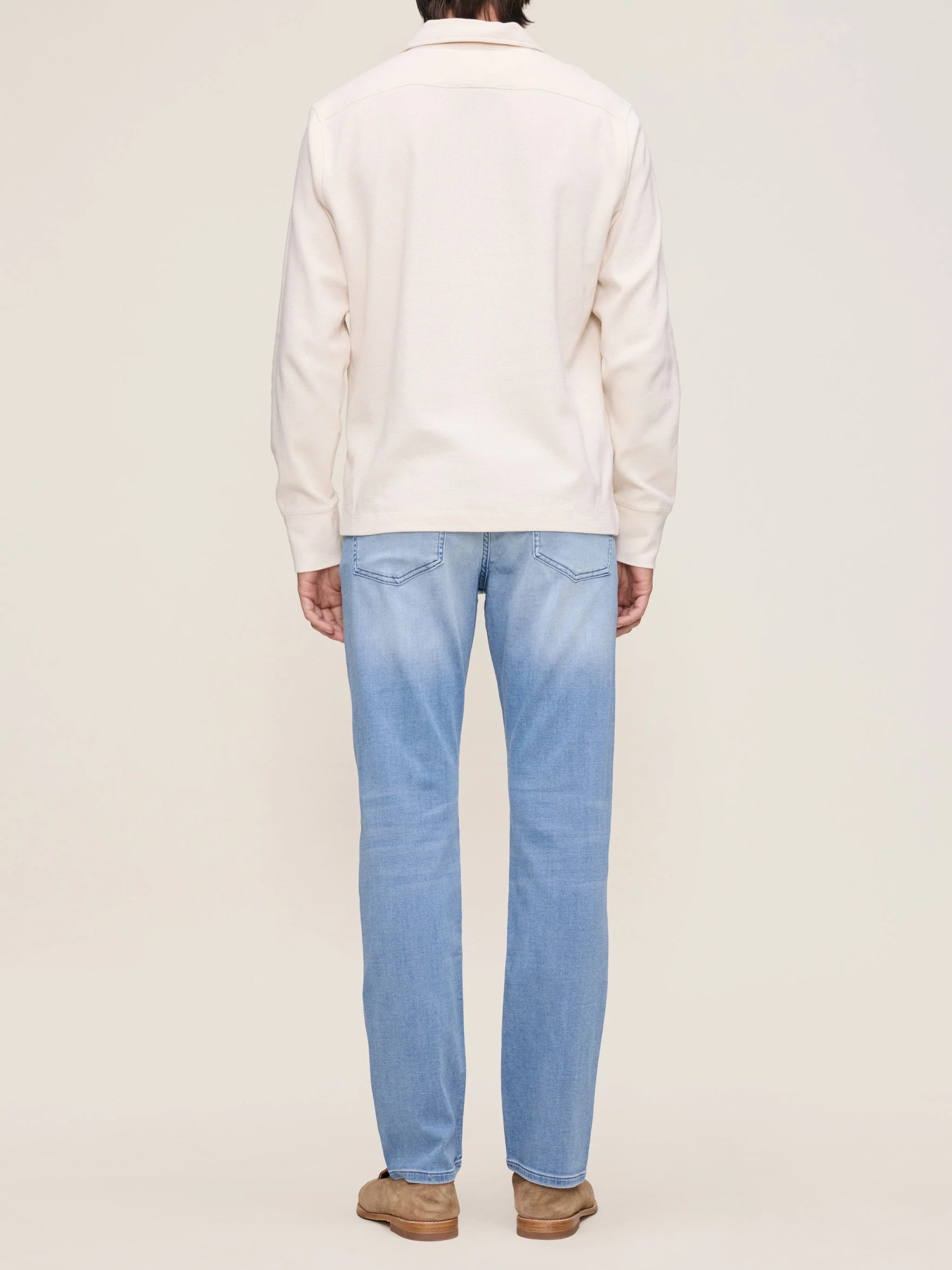 Meet Russell, the jean that's been stealing the show. This slim straight silhouette gives you room to breathe through the seat and thigh, then tapers cleanly from the knee down—the goldilocks fit that actually works. Ramer's mid-to-light indigo wash has serious character: a subtle beige undertone, worn-in vibes, and matte silver hardware that doesn't try too hard. Tonal stitching and an ecru back patch keep things understated.