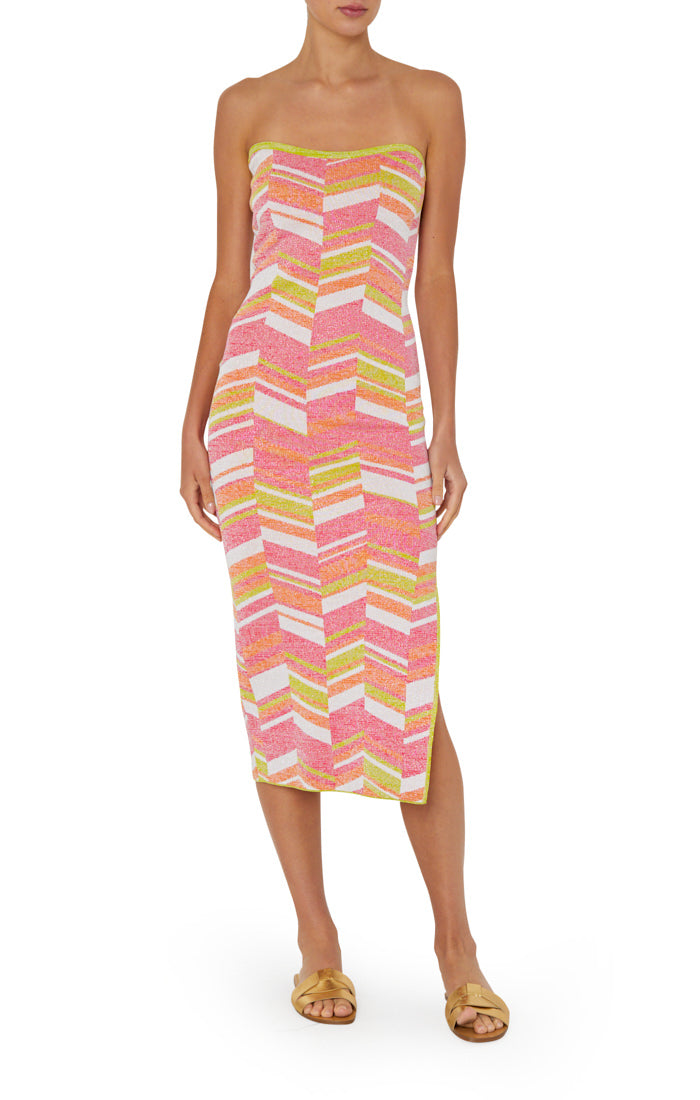 Strapless Multicolor Chevron Knit Dress Chartreuse Multi - MILLY